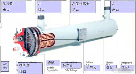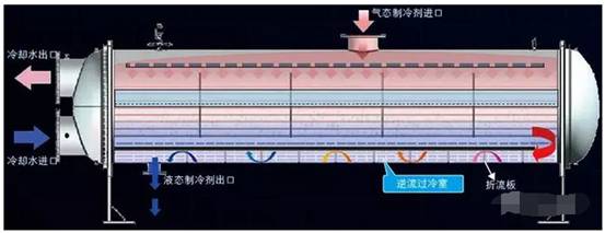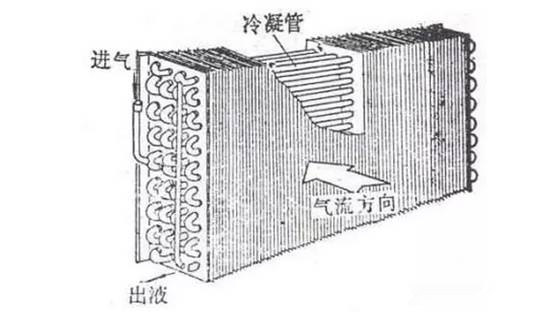 制冷劑常下進上出,空氣和制冷劑2常呈逆流,效率較低(與臥式殼管式比較),廣泛應(yīng)用于中小機組。