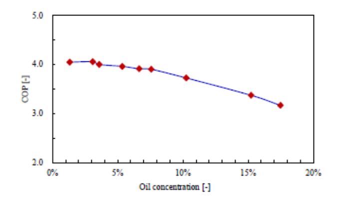 • 油循環(huán)率從0.5%增至4%,COP衰減3%