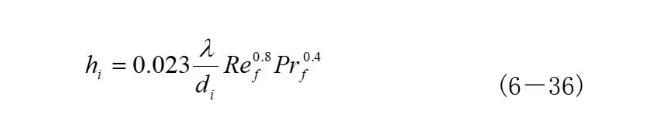 冷卻水在管內(nèi)強(qiáng)迫對(duì)流換熱的表面?zhèn)鳠嵯禂?shù)可用式(6-36)計(jì)算,即迪圖斯-玻爾特(Dittus-Boelter)公式: