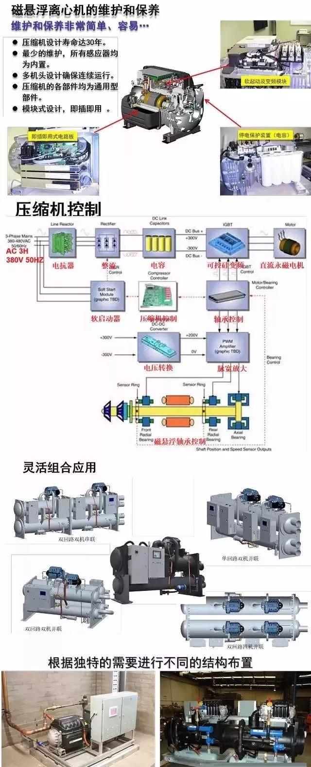 磁懸浮變頻離心機一舉克服了傳統(tǒng)機械軸承式離心機能效受限、噪音大、啟動電流大、維護費用高等一系列弊端,是一種更為節(jié)能、高效的中央空調產(chǎn)品。