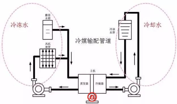 空調(diào)冷凍水系統(tǒng)由冷凍水管道、冷凍泵、蒸發(fā)器、末端空調(diào)設(shè)備組成。