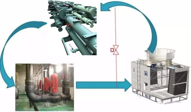 空調(diào)冷卻水系統(tǒng)由冷卻水管道、冷卻泵、冷凝器、冷卻塔組成。