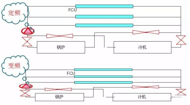 變流量系統(tǒng):適用于熱量變化較大酒店、客房等場所。該系統(tǒng)存在較大節(jié)能空間。