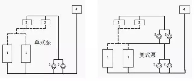 復(fù)式泵:適用于系統(tǒng)較大、各區(qū)域系統(tǒng)需求較大的場所。如:市政熱力、科技園區(qū)等。
