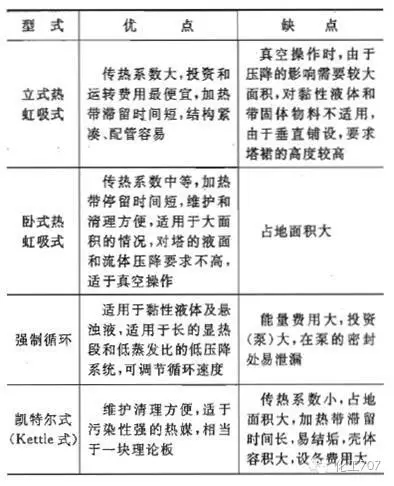 多采用管殼式換熱器,分為強制循環(huán)式、熱虹吸式和釜式再沸器三種。其設(shè)計溫差一般選用20~50℃,單程蒸發(fā)率一般為10%~30%。