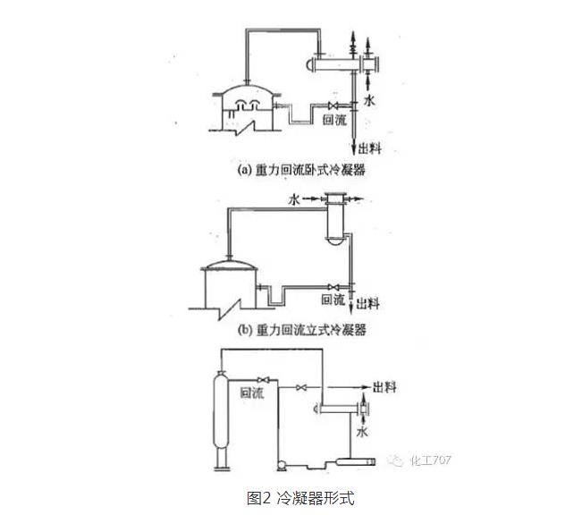一般用于蒸餾塔塔頂蒸汽的冷凝以及反應(yīng)氣體的冷凝,對于蒸餾塔頂,一般選用管殼式、空冷器、螺旋板式、板翅式等換熱器作為冷凝器,對于反應(yīng)系統(tǒng),一般選用管殼式、套管式或噴淋式等換熱器作為冷凝器。