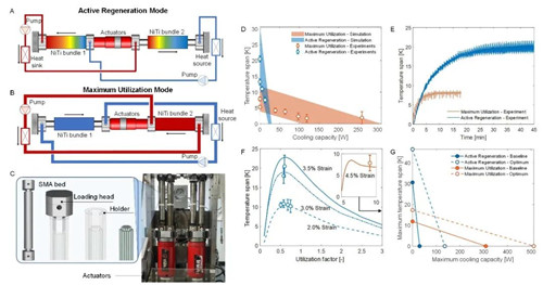 彈熱制冷是利用形狀記憶合金在單軸應(yīng)力作用下發(fā)生可逆相變,并利用該相變潛熱制冷的新型固態(tài)制冷技術(shù)。與傳統(tǒng)蒸氣壓縮制冷相比,彈熱制冷具有零溫室氣體排放、高體積能量密度、易于回收利用等突出優(yōu)勢(shì)。