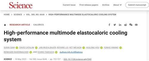 近日《科學(xué)》(Science)期刊發(fā)表了西安交通大學(xué)在固態(tài)制冷方向的最新成果——《高性能多模式彈熱制冷系統(tǒng)》(High-performance multimode elastocaloric cooling system)一文。這是《科學(xué)》(Science)首次刊登的關(guān)于彈熱制冷機(jī)的論文。