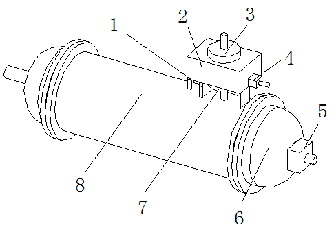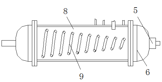 作為本實(shí)用新型的一種優(yōu)選技術(shù)方案,所述換熱導(dǎo)管通過連接架與連接管殼的內(nèi)側(cè)連接,所述換熱導(dǎo)管為錐形彈簧狀結(jié)構(gòu),通過換熱導(dǎo)管可以對(duì)內(nèi)部的氣體進(jìn)行散熱,使得散熱效果更好。