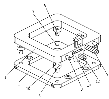 作為本實(shí)用新型的一種優(yōu)選技術(shù)方案,所述第一鎖緊機(jī)構(gòu)包括第一鎖緊器和第一鎖孔,第一鎖孔開設(shè)在緊固件上,所述第一鎖緊器安裝在固定座的側(cè)面,第一鎖緊器與第一鎖孔插接,通過第一鎖緊機(jī)構(gòu)對(duì)固定座與減震座進(jìn)行固定,大大提高了組裝的牢靠性。