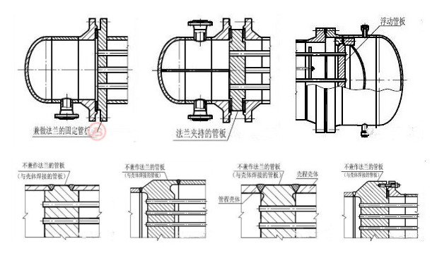 根據(jù)管板與管箱、殼體的連接結(jié)構(gòu),管板可分為: