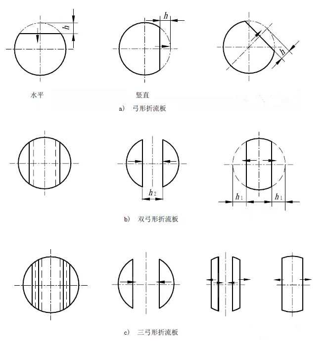 2) 左右排列(豎直缺口)是指物料進(jìn)口與弓形缺口是成平行設(shè)置的。多用于臥式冷凝器或蒸發(fā)器,便于冷凝液和氣體的流動(dòng)。