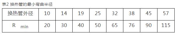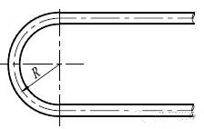 U 形管彎管段的彎曲半徑R(如下圖所示)應(yīng)不小于兩倍的換熱管外徑,常用換熱管的最小彎曲半徑R min 按表2選取。
