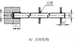 b) 拉桿與折流板點(diǎn)焊結(jié)構(gòu),用于換熱管外徑小于或等于 14mm 的管束。