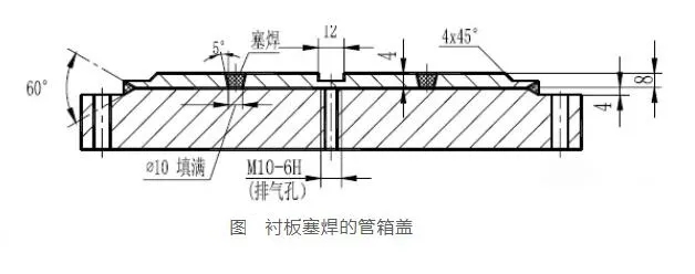 c) 下圖是采用襯板塞焊的管箱蓋,但不適用于真空狀態(tài)的場(chǎng)合。