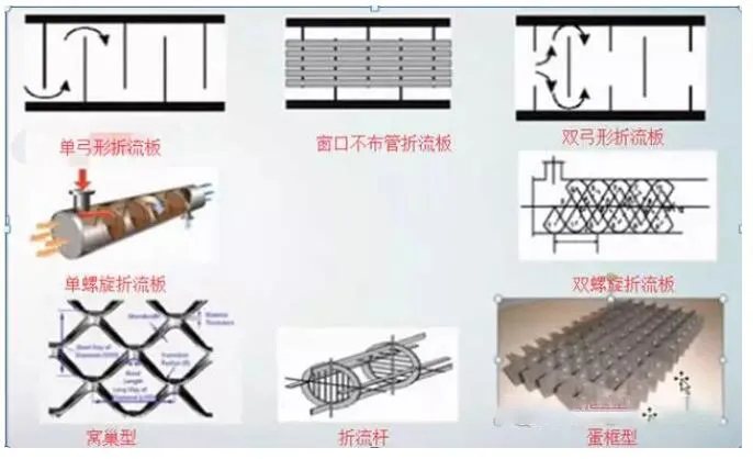 螺旋折流板:分為單螺旋折流板和雙螺旋折流板優(yōu)點(diǎn)是換熱好,壓降低,流動(dòng)均勻;缺點(diǎn)是制造困難;設(shè)計(jì)要點(diǎn)是螺旋角度5-45°,適合的場(chǎng)合時(shí)壓降受限,容易結(jié)垢的場(chǎng)合。