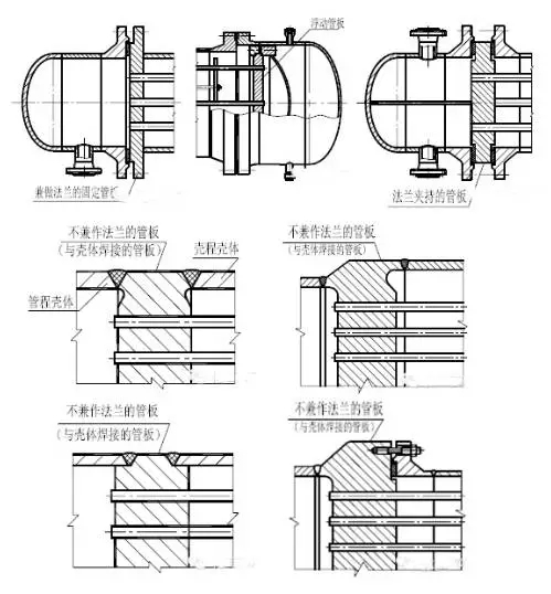 根據(jù)管板與管箱、殼體的連接結(jié)構(gòu),管板可分為: