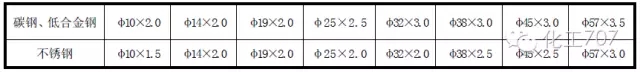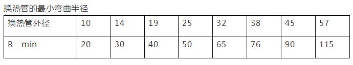 U 形管彎管段的彎曲半徑R應(yīng)不小于兩倍的換熱管外徑,常用換熱管的最小彎曲半徑R min 按下表選取。