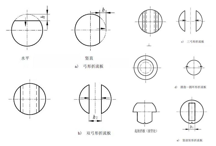 2 左右排列(豎直缺口)是指物料進(jìn)口與弓形缺口是成平行設(shè)置的。多用于臥式冷凝器或蒸發(fā)器,便于冷凝液和氣體的流動(dòng)。