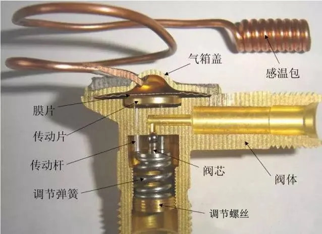 使冷凝器出來的高壓液體節(jié)流降壓,使液態(tài)制冷劑在低壓(低溫)下汽化吸熱。所以,它是維持冷凝器中為高壓、蒸發(fā)器為低壓的重要部件。
