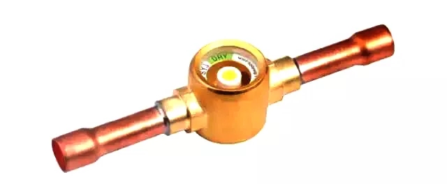 3、回油管路中來自油分離器的潤滑油的流動(dòng)狀況。有的視液鏡帶有一指示器,它通過改變其顏色來指出制冷劑中的含水量。(綠色表示干燥,黃色表示潮濕) 。