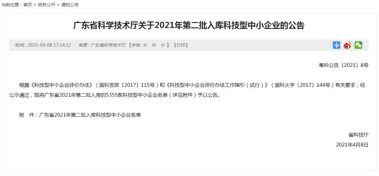 廣東省2021年第二批入庫科技型中小企業(yè)名單公告