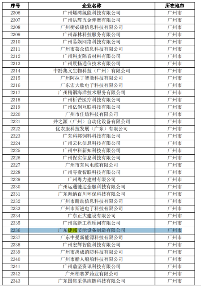 廣東捷邦節(jié)能設(shè)備制造有限公司入選廣東省2024年第一批擬入庫科技型中小企業(yè)名單。